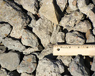 1 ½” Dry Screened Rock is produced from 100% post consumer concrete. This product has particles as large as 1 ½” down to ¾”, and can be used to stabilize a muddy driveway, roadway or parking lot. Other uses becoming more popular are as back fill behind retaining walls, in landscaping and as a parking surface for boats and recreational vehicles.